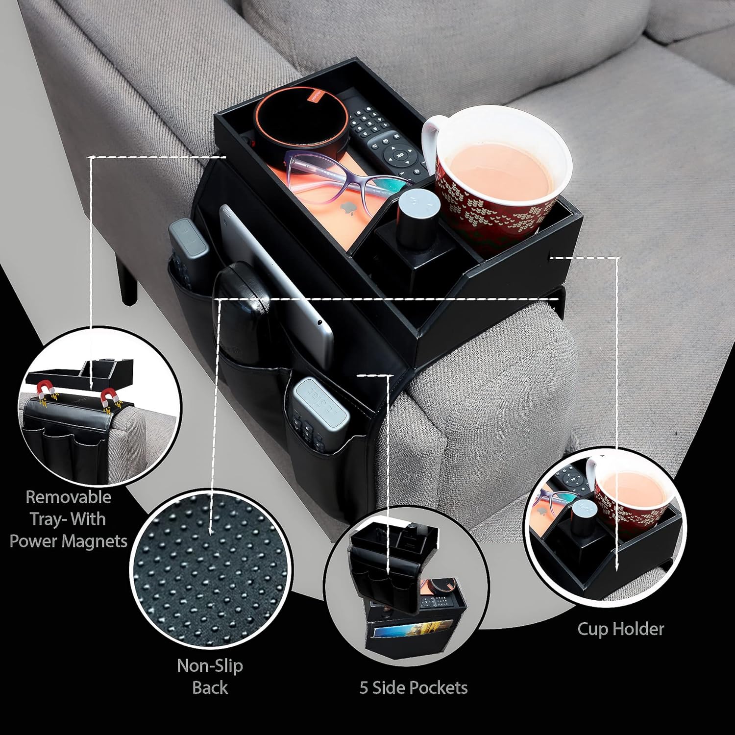 - Lieferumfang: 1x Armlehnen-Tablett mit Organizer