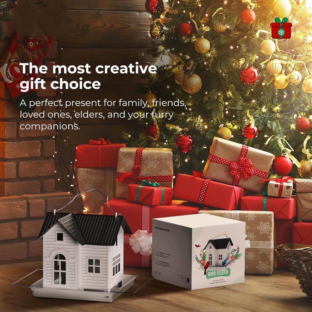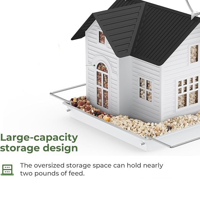 Das hochwertige Vogelfutterhaus kombiniert Funktionalität und Ästhetik. Tagsüber lädt sich das Solarpanel auf, abends sorgt die sanfte LED-Beleuchtung für stimmungsvolles Licht. Das wetterfeste Metallgehäuse schützt zuverlässig bei Regen und Schnee.