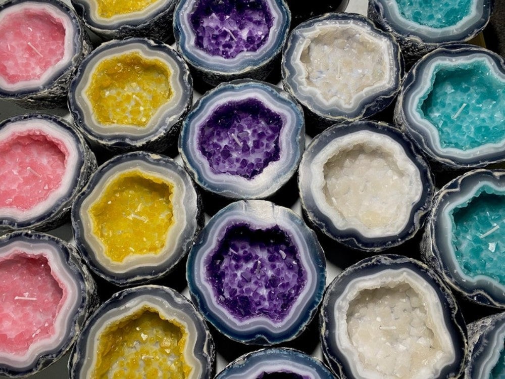 ✅Einzigartiges, von Geoden inspiriertes Gestaltung: Mit ihren natürlichen Achat-Ringmustern und ihrem kristallartigen Aussehen sind GemLight-Kerzen wirklich einzigartig. Jede Kerze ähnelt einer wunderschön gearbeiteten Geode und verleiht jedem Raum Eleganz und Raffinesse. Ihr aufwendiges Gestaltung macht sie zu einem auffälligen Dekorationsstück, das sich nahtlos in jeden Einrichtungsstil einfügt.