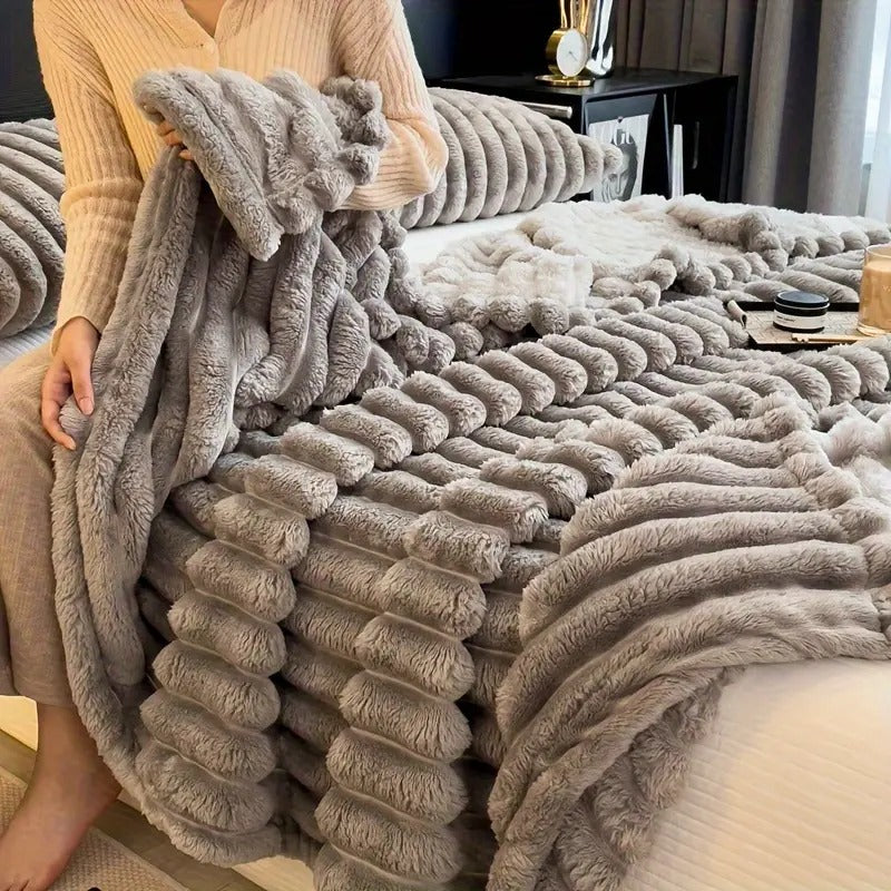 Erleben Sie Komfort und Vielseitigkeit mit unserer dicken, bequemen, gestreiften Decke. Diese multifunktionale Decke ist ideal, um Wärme und Stil in jeden Raum zu bringen. Sie eignet sich ideal für Ihr Bett, als Schlafdecke oder sogar für Ihre Haustiere. Ihr weiches, dickes Material sorgt dafür, dass Sie es in kühlen Nächten oder an faulen Tagen gemütlich haben.