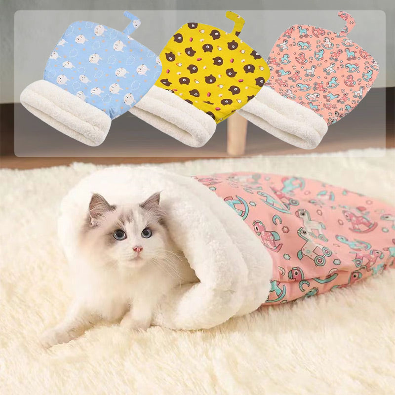 Gönnen Sie Ihrer Katze mit dem Gemütliches Katzen-Winterbett einen kuscheligen Rückzugsort im Winter. Dieser ultra-weiche Schlafsack bietet Wärme, Komfort und einen Hauch von Spaß! Mit seiner halbgeschlossenen Struktur bietet er Ihrer Katze den idealen Rückzugsort für den Winter und hält sie die ganze Saison über kuschelig warm.
