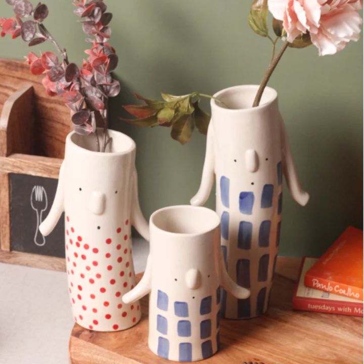 Verleihen Sie Ihrem Zuhause einen Hauch von Eleganz und Wärme mit unserem handgefertigten Familienvasen-Set. Jede Vase ist ein einzigartiges, handgefertigtes Kunstwerk, perfekt, um Ihrer Familie Glück und Segen zu bringen. Die neutrale Farbe und das schlichte Design machen sie zu einer vielseitigen Ergänzung für jeden Raum.