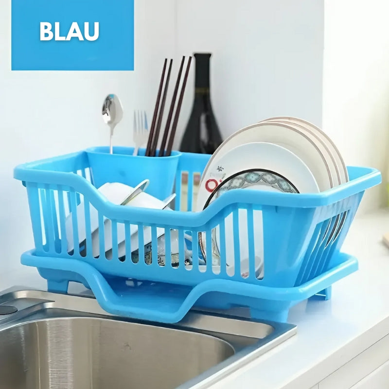 Kompaktes Geschirr-Trockengestell mit Abtropfbrett